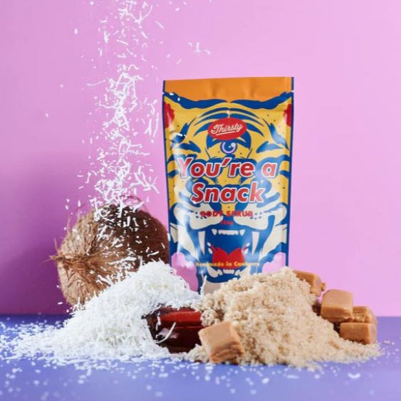 - You're A Snack | This luscious body scrub will get your glow happening so you feel just like the snack you are. Nourishing coconut and caramel with sweet rich syrupy notes.