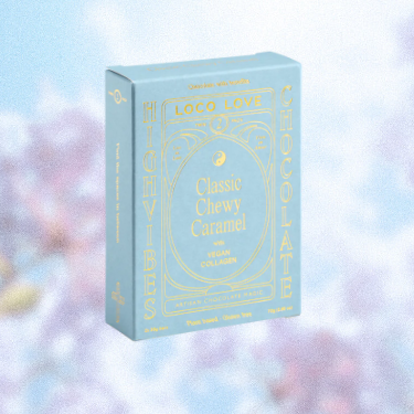 Classic Chewy Caramel | Lusciously chewy and irresistibly gooey caramel centre, wrapped in sumptuous 70% dark chocolate and enhanced with vanilla and plant-based collagen for both inner and outer glow. Plant based & gluten free.