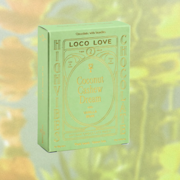 Coconut Cashew Dream | A coco-nutty caramel with chunks of lightly toasted cashews; slightly salted with a chewy texture and a whole lotta’ love. Delightfully enhanced with aromatic vanilla bean and enrobed in dark 70% Peruvian cacao. Plant based & gluten free.