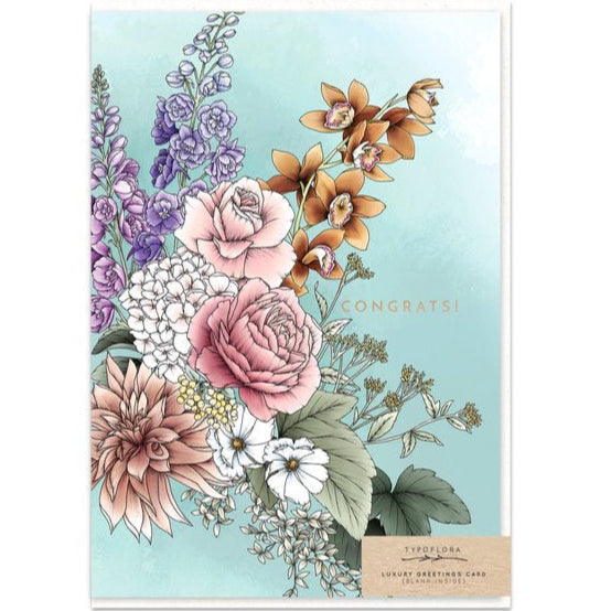 - hand drawn floral and foliage illustrations and calligraphy with rose gold foil finish