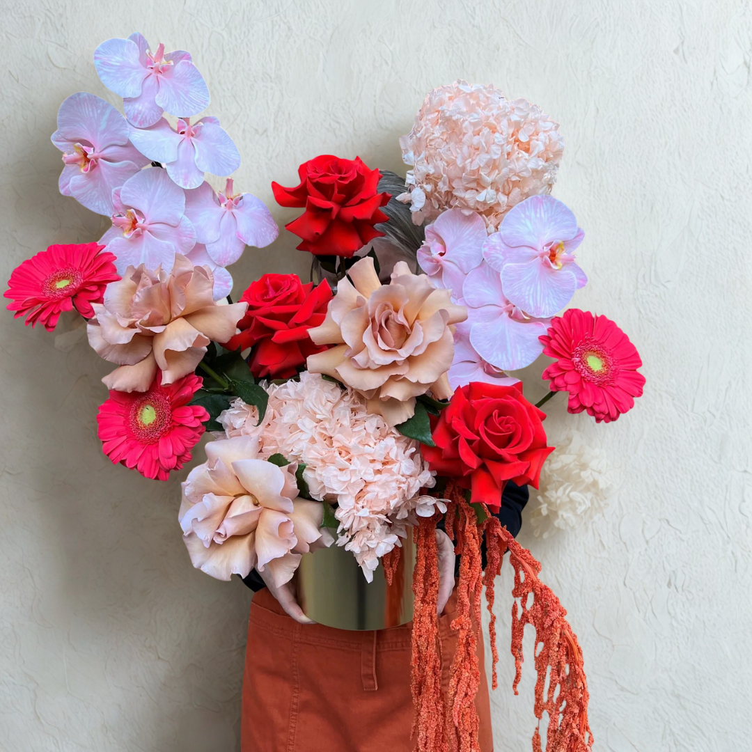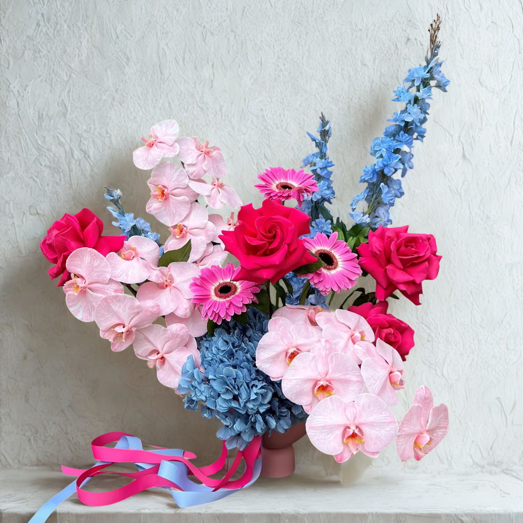 Note* Pictures are for example only, the Absolutely Fabulous arrangement is florists pick. Trust us to create something spectacular for you. Pictured are Opulent. Pot used may vary. We may sometimes include artificial or preserved flowers.