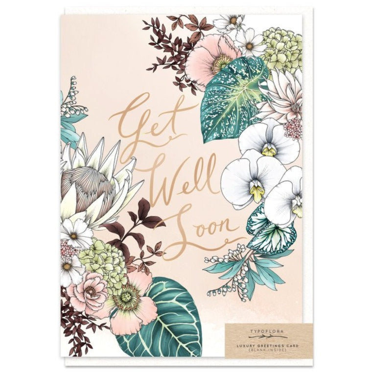 - hand drawn floral and foliage illustrations and calligraphy with rose gold foil finish