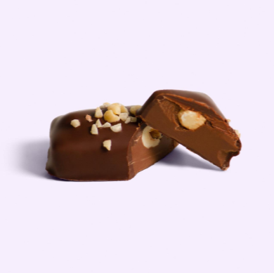 Hazelnut Butter Praline | A smooth and freshly ground hazelnut butter center, with a few crunchy surprises. Spiked with Peruvian ginseng aka maca powder, which is known for its adaptogenic qualities and increasing libido. Think Ferrero Rocher without the harmful sugars. Ceremoniously inhale the nutty, cacao-drenched aroma for a sensorial delight. Plant Based & gluten free.