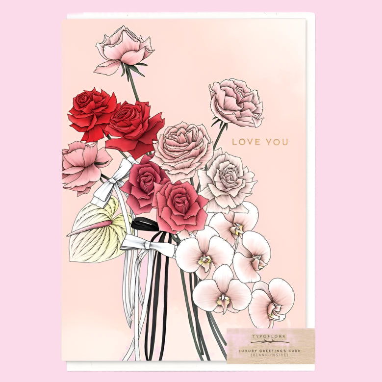 - hand drawn floral illustrations and calligraphy with rose gold foil finish