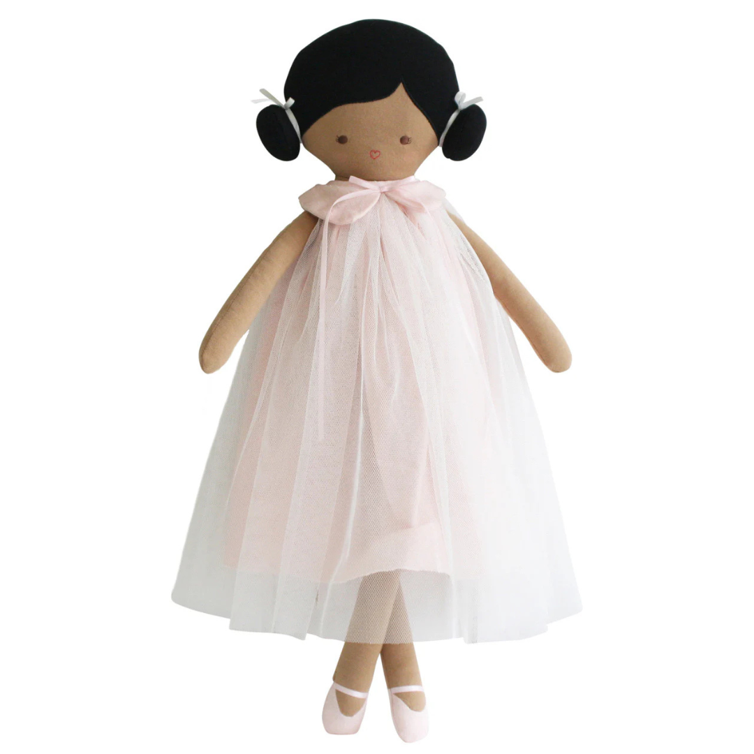 Lulu is the most beautiful doll you ever did see. She has a sweet little face with cute little buns. Her soft linen and tulle baby doll dress is absolutely stunning. A very beautiful, very special doll. Lulu has a removable dress, encouraging developmental play.